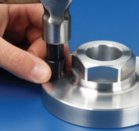 通過專用安裝工具,用榔頭敲擊使插銷固定鍵進入壁槽,工件內(nèi)螺紋有損傷。